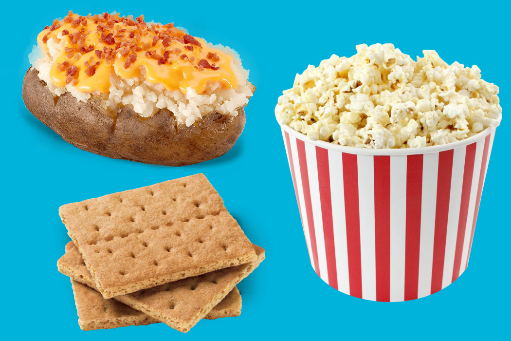 Carbohydrates raise your level of the brain chemical serotonin, which enhances your sense of well-being. Go for low-fat options like popcorn, a baked potato, graham crackers, or pasta. Carbs from vegetables, fruit, and whole grains are even better choices — they also give you fiber.