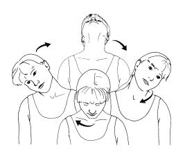 In a seating or standing position tilt your chin sideways until it is parallel to your shoulder, then slowly make a wide circle with your chin starting downwards. Di it alternatively clockwise and counterclockwise.