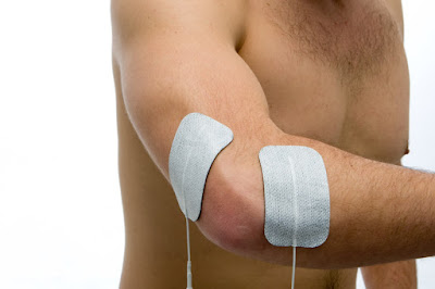 Electrical stimulation. Electrical stimulation of muscle tissue (called neuromuscular electrical stimulation) around the elbow may be useful for strengthening the muscles that support the joint and relieving pain in and around the joint. Electrical stimulation is often used on the knee, but is also a widely used treatment for tennis elbow.